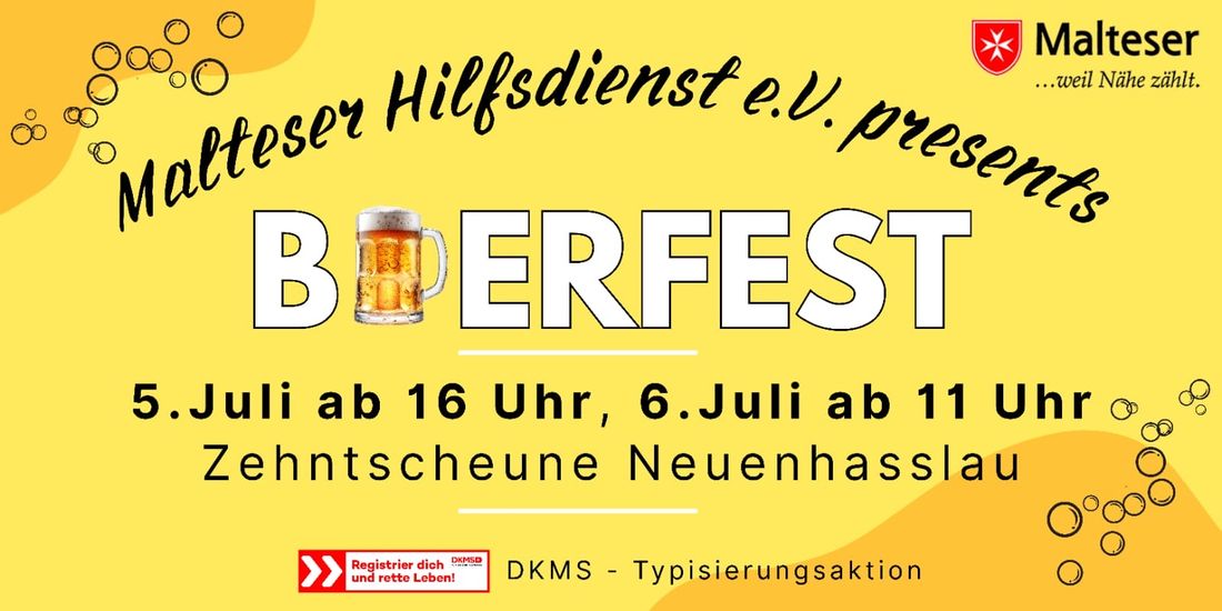 De Malteser aus Hasselroth/Freigericht laden zum Bierfest am 5. und 6. Juli 2025 in die Zehnscheune nach Neuenhaßlau ein.