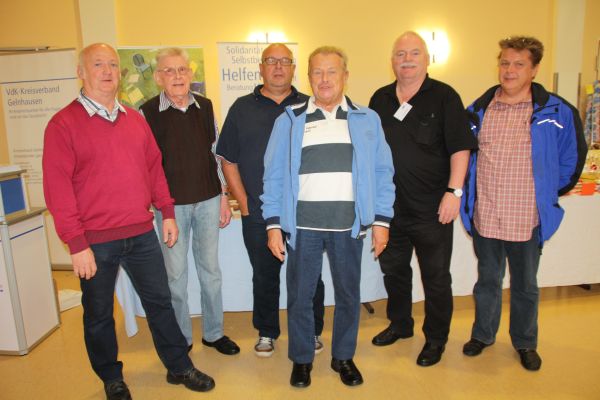 Foto: Das Team des VdK Ortsverbandes vom 5. Hasselrother Gesundheits- und Wellness Tages (von links) Stefan Bozsolik, Hans Dörsch, Jürgen Scharf, Wilhelm Beck, Helmut Müller und Edgar Ubrich. Es fehlen Karl-Heinz Müller und Eugen Fritsch.