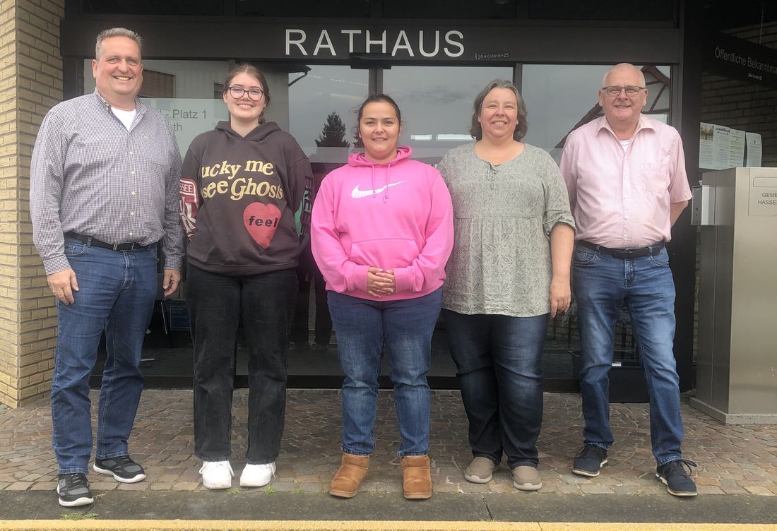 Bürgermeister Matthias Pfeifer (Soziale Wählergemeinschaft), Hauptamtsleiter Siegfried Richter und die Leiterin der Kindertagesstätte „Am Krähenwald“ Martina Kämmerer freuen sich eine neue Auszubildende zur Sozialassistentin und eine Freiwillige im Bundesfreiwilligendienst in der Kindertagesstätte „Am Krähenwald“ begrüßen zu dürfen.