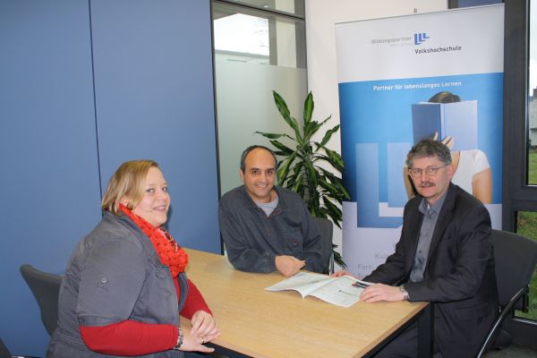 BiP-Geschäftsführer Horst Günther, die Leiterin des Fachbereichs Sprachen Vera Mala und Behrad Farhan, 2. Vorsitzender des Aktionskreises aktives Niedermittlau, trafen sich vorab, um alles Organisatorische zu besprechen.