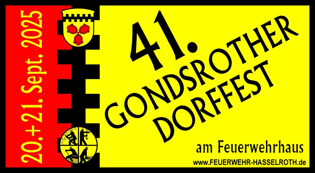 Am dritten Wochenende im September gibt es wieder das GONDSROTHER DORFFEST am Feuerwehrhaus. In diesem Jahr ist es bereits die 41. Auflage!