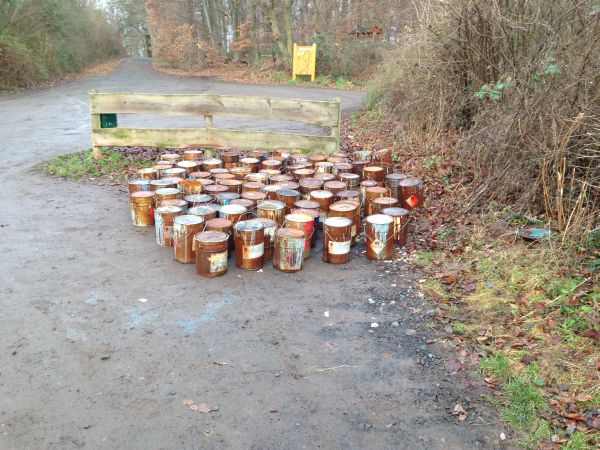 Am Nachmittag des 18. Januar wurden die Einsatzkräfte zum Parkplatz am Fuße des Buchbergs alarmiert. Unbekannte hatten dort rund 30 Blechgebinde mit Lack- und Farbresten abgestellt. Ein weiteres Mal dann am Morgen des 19. Januar: Auch hier waren es die gleichen Gebinde. Geschätzte 80 Behälter standen am östlichen Parkplatz des Friedhofs am Rödelberg. Die stark verrosteten Behältnisse wurden von den Einsatzkräften auf ein Pritschenfahrzeug geladen und zu einer gesicherten Verwahrungsstelle gebracht. Bereits ausgetretene Flüssigkeit wurde mit Bindemittel aufgenommen. Teilweise war ein Abtrag der Erdoberfläche notwendig.