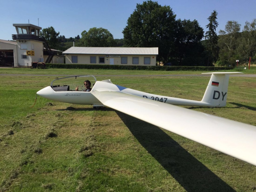In eigener Regie hat er für den Reimport nach Deutschland mit allen seinen bürokratischen Hürden gesorgt. Auch der Transportanhänger musste erst nach deutschem Recht zugelassen werden. Nun kann man endlich das Standardklasseflugzeug vom Traditionshersteller Schempp-Hirth aus Kirchheim an der schwäbichen Alb in die hessische Luft entlassen. Das Bild zeigt Lukas Wagner beim Jungfernflug in Langenselbold.