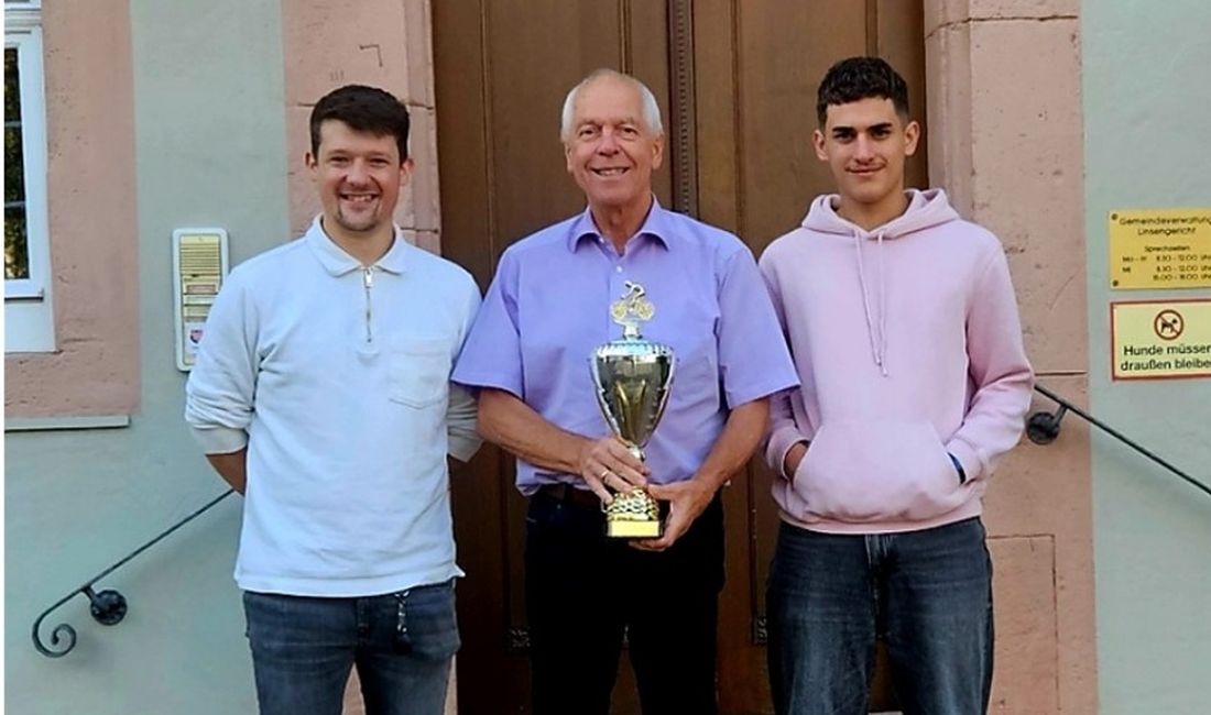 Philipp Kirsch (Koordination MKK), Bürgermeister Albert Ungermann und Jannis Staab (Praktikant MKK) bei der Pokalübergabe.
