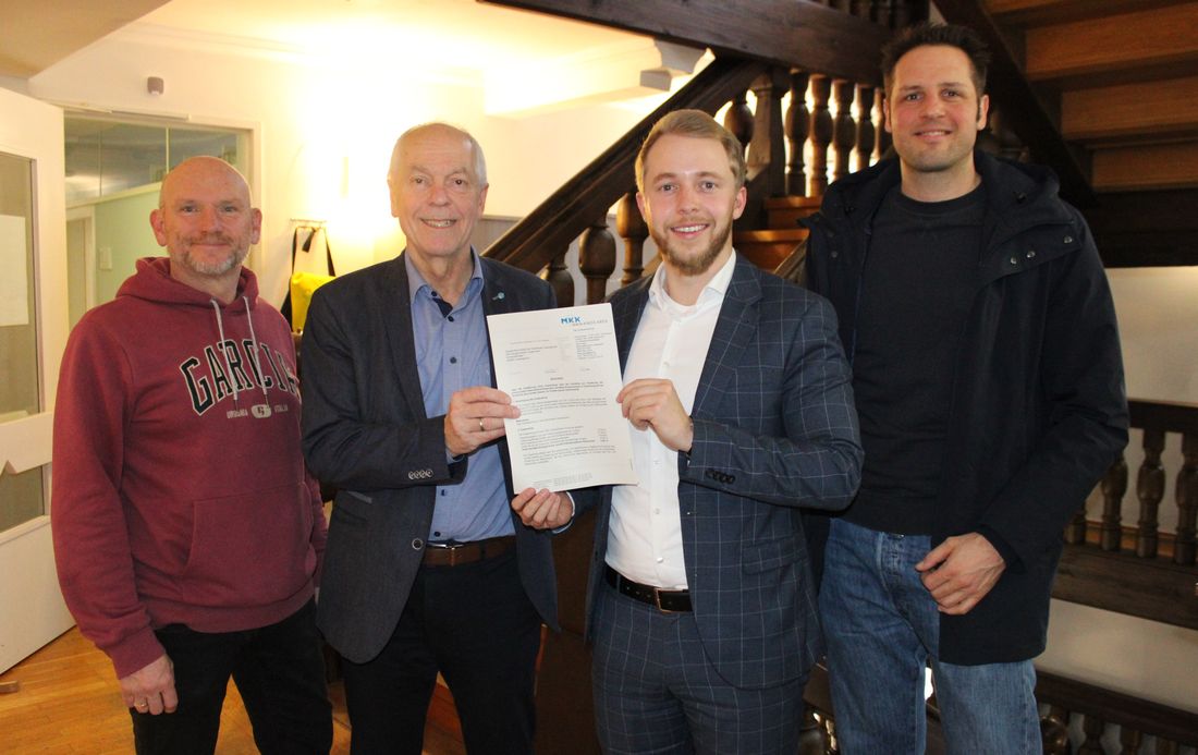 Linsengericht erhält eine Förderung für seinen Nahmobilitäts-Check (von links): Ordnungsamtsleiter Alexander Schrempf, Bürgermeister Albert Ungermann, Kreisbeigeordneter Jannik Marquart und Elmar Sachs, Radverkehrsbeauftragter im Main-Kinzig-Kreis.