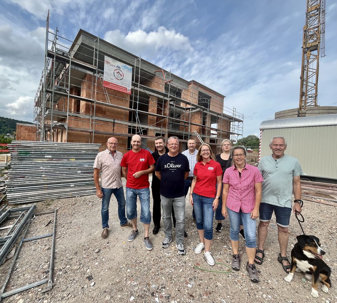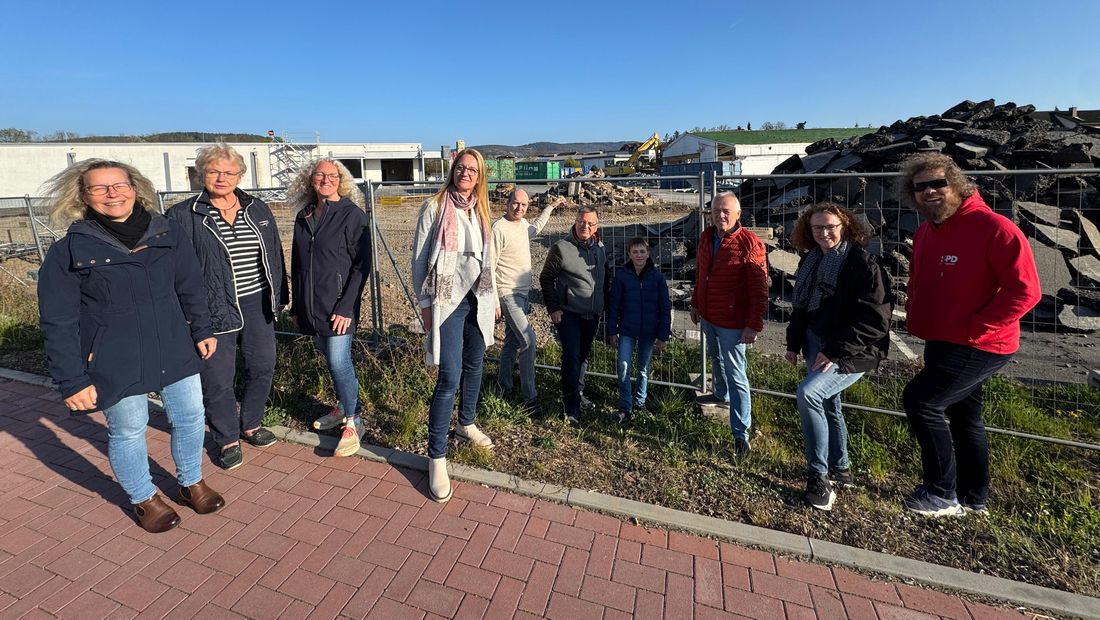 Die Linsengerichter SPD informiert sich über den Baufortschritt des Hausarztzentrums und der weiteren Bebauung am ehemaligen Festplatz Altenhaßlau.