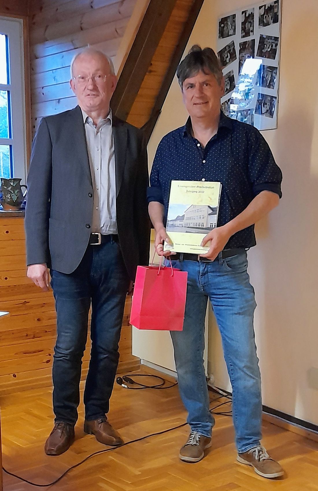 Linsengerichts Bürgermeister Albert Ungermann (SPD) und Melanie Kroh, Fachdienstleitung Kindertagespflege, übergeben ein Tür-Schild und ein Maskottchen an Mira Hartwig (Mitte).