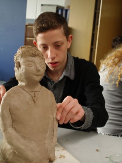 Foto: Ein Schüler der EKS bereitet Exponate für die Ausstellung vor.