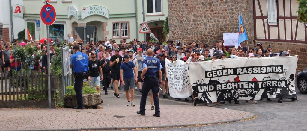 Michael Jackson schallte aus den lauten Lautsprecherboxen auf dem Parkplatz des Bürgertreffs, wo sich die Demonstranten zunächst zu einer Kundgebung versammelt hatten. Zu den Rednern gehörten Robert Weißenbrunner von der IG Metall und der Kreistagsabgeordnete Tobias Huth (DIE LINKE), hauptberuflich DGB-Gewerkschaftssekretär. Die AfD hatte bereits vor circa 15 Monaten das Bürgerhaus in Kilianstädten für eine Wahlkampfveranstaltung angemietet, der Protest damals war laut Angaben von Beteiligten damals deutlich größer.