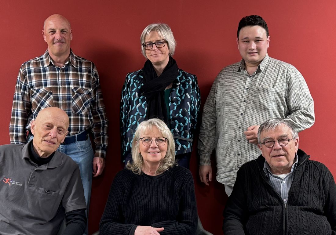 Von links: Sitzend Jürgen Jung (Beisitzer), Romy Nickel (1. Vors.) - Otto Löber (2. Vors)., stehend Andreas Buttkus (Schriftführer), Dorit Kühnhausen (Beisitzerin), Sam Pfeifer (Vorsitz Wirtschaftsausschuss).