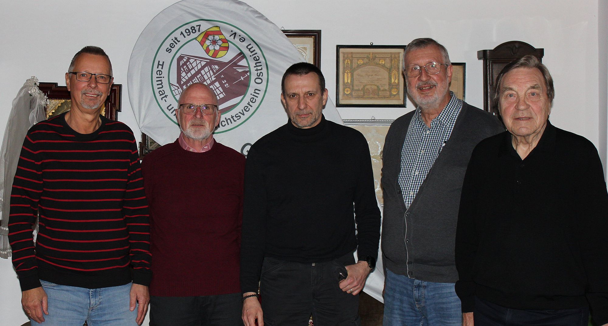 Horst Körzinger, Vorsitzender der Nidderauer Bürgerstiftung, im Kreise des Vorstands des HGV Ostheim mit Horst Schwarz, Prof. Dr. Jürgen Müller, Thomas Philippi und Günter Brandt.