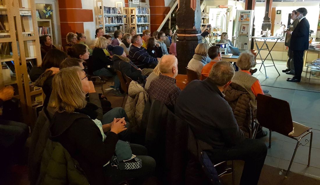 Die Bücherei gilt gemeinhin als Ort der Stille. Am Freitag, 22. November 2024, sorgte der Langenselbolder Buchhändler Matthias Mayer in der Stadtbücherei Nidderau für befreiendes Kichern und brüllendes Lachen.