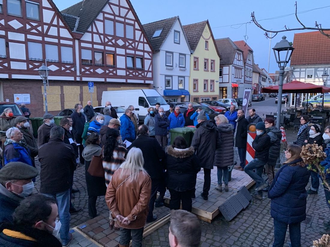 Die Stadt Nidderau hat Bürger/innen zu einem Ortstermin am Windecker Marktplatz eingeladen. Es kamen ca.50 Personen.