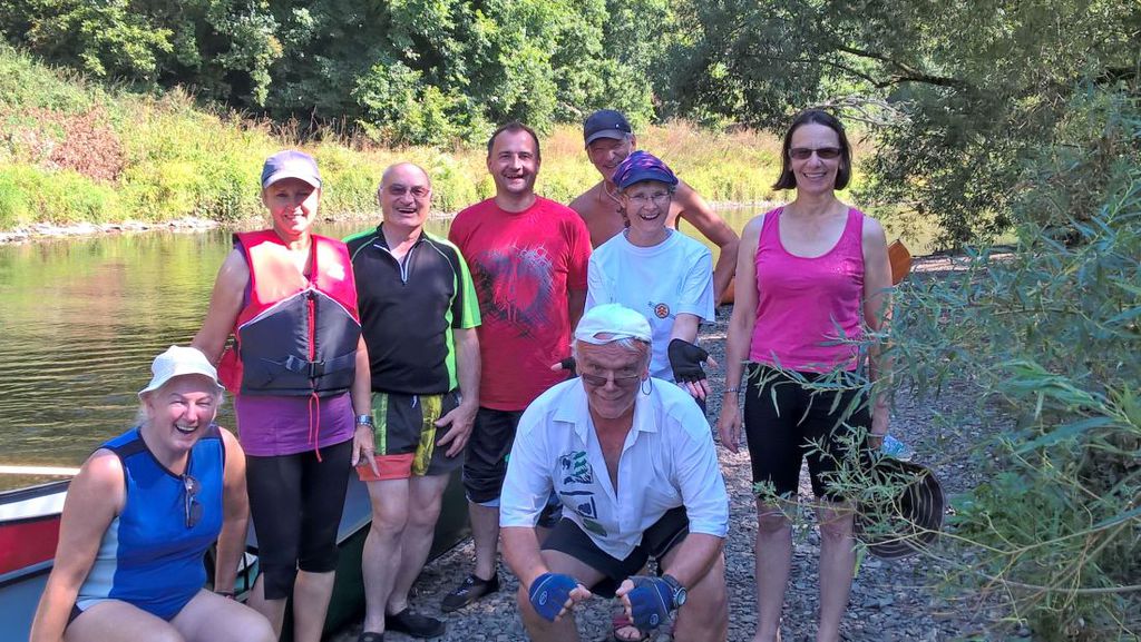 Durch die Felsen, die sich hier auch im Wasser befinden entstehen Stromschnellen die beim Paddeln besonders viel Spaß gemacht haben und auch die Reisegeschwindigkeit der Kanus beschleunigten. Eine kurze Schwimmpause in der Lahn war wegen der hohen Temperatur für alle eine willkommene Abkühlung.