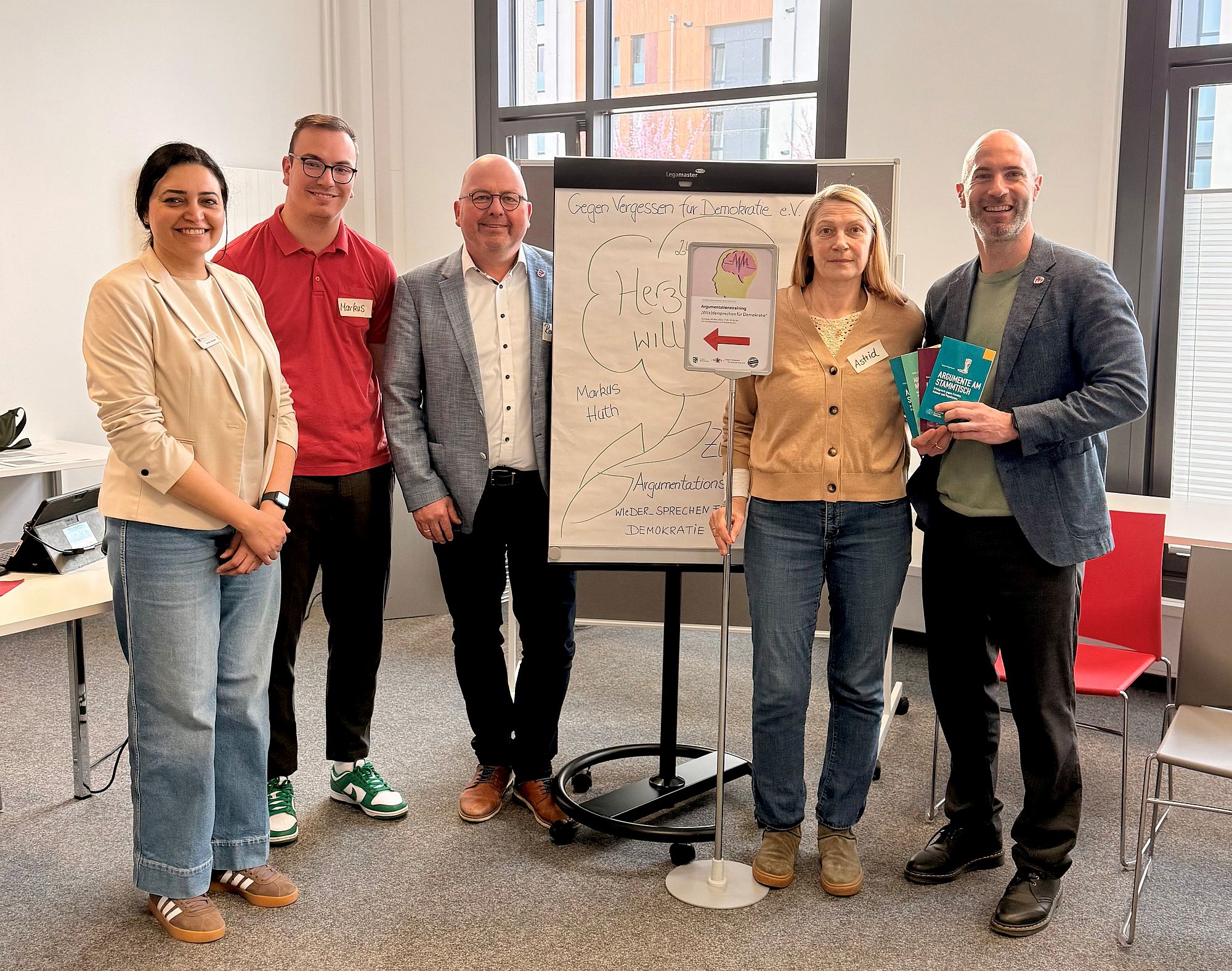 Im Mittelpunkt des von den Coaches Astrid Marx und Markus Huth vom Verein „Gegen Vergessen – Für Demokratie e.V.“ geleiteten Seminars standen Strategien und Methoden für eine konstruktive Kommunikation. Diskutieren beginnt mit Zuhören: Das Erkennen der eigenen Gefühle und Bedürfnisse sind Voraussetzungen, um Perspektivwechsel vollführen zu können und Haltung zu zeigen, ohne den Dialog abzubrechen. Techniken wie „Ich-Botschaften“ und aktives Zuhören wurden vermittelt.