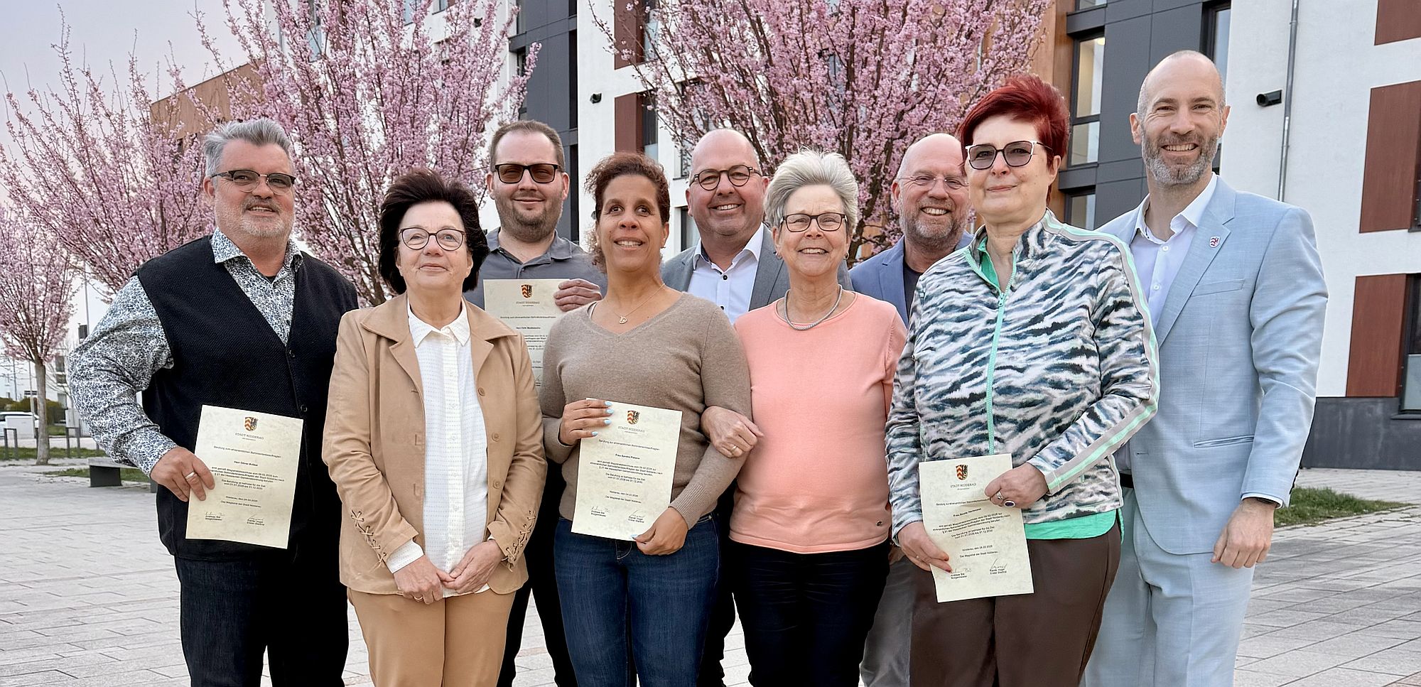 „Die Behindertenbeauftragten legen den Fokus auf einen Bereich, der im Alltag zu oft zu kurz kommt. Es ist sehr schön und für mich persönlich auch sehr bewegend, dass die Stadt jetzt über so viele Menschen verfügt, die ein wenig piksen wollen“, sagte Nidderaus Bürgermeister Andreas Bär, der gemeinsam mit Erstem Stadtrat Rainer Vogel (Grüne) im Familienzentrum die Ernennungsurkunden überreichte. „Das Engagement der Behindertenbeauftragten ist ein kleiner, aber wichtiger Baustein auf dem Weg zu einer inklusiven Welt“, ergänzte Erster Stadtrat Vogel. Nicht alles könne umgesetzt werden, vieles nur langsam. Aufgrund dieses Frustpotenzials sei er froh, dass man nun über „mehr Man- und Frauenpower verfügt“.