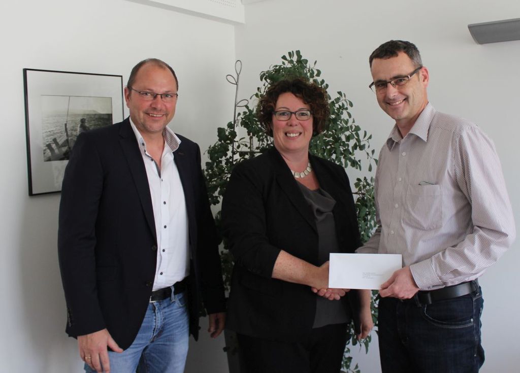Foto: Erste Kreisbeigeordnete Susanne Simmler überreicht einen Scheck an den Sprecher des Arbeitskreises der HGON Main-Kinzig Andreas Höfler (v.l.: Bernd Leutnant, Susanne Simmler und Andreas Höfler).