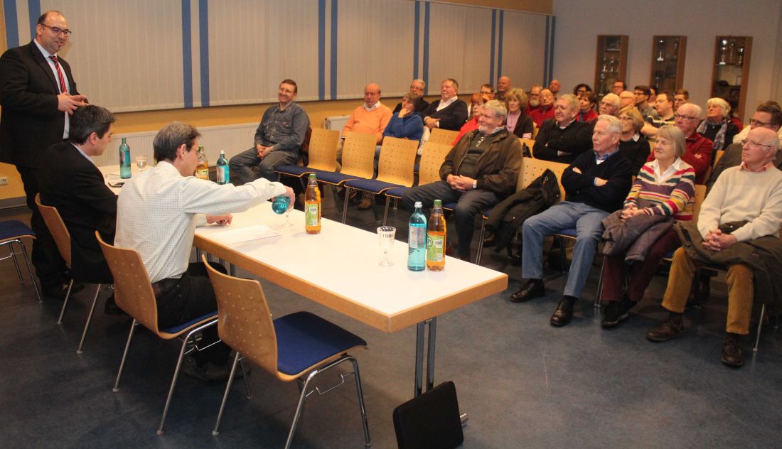 Foto: Von Fluchtursachen über die Globalisierung bis zum Freihandelsabkommen TTIP: Dr. Sascha Raabe, flankiert von Rodenbachs Bürgermeister Klaus Schejna (rechts) und SPD-Ortsvereinsvorsitzendem Ralf Betz, legte komplexe Zusammenhänge anschaulich dar.
