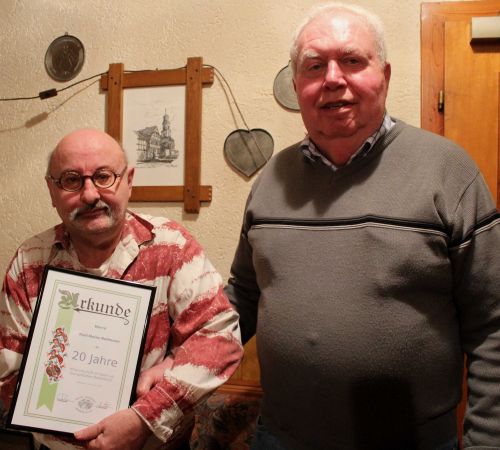 Der Vorsitzende ehrte anschließend Karl-Heinz Rullmannfür 20 Jahre Treue und aktive Beteiligung im Verein. Der Jubilar erhielt eine eingerahmte Urkunde und ein Geldgeschenk.