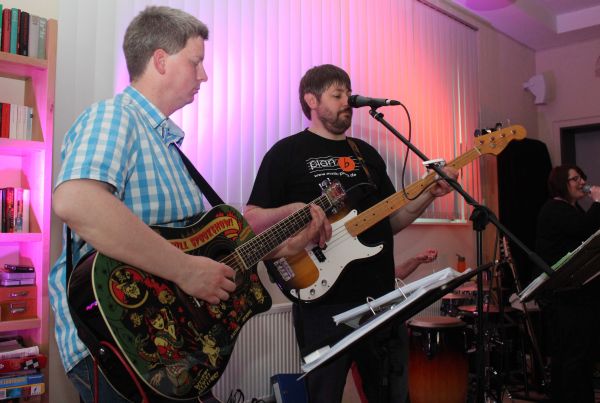 Die vier Musiker waren mit Klavier, Bass, Akustik-Gitarre und Percussions ausgestattet spielten Rock und Pop aus den letzten Jahrzehnten. Auf verzerrte E-Gitarren und laute Drums verzichten sie bewusst. Das Publikum war begeistert von ihrer Musik, den sie bekam einen akustischen Touch, bei dem immer der Spaß an der Musik und die Herausforderung, mit mehrstimmigem Gesang und wenigen Instrumenten Lieder neu zu entdecken im Vordergrund standen. Zur Gesangsverstärkung mit ihrer „acoustic cover-music“ hatten die Band plan:b kurzfristig Sabine Sanogo (Biene) von den Wingerts angeheuert.