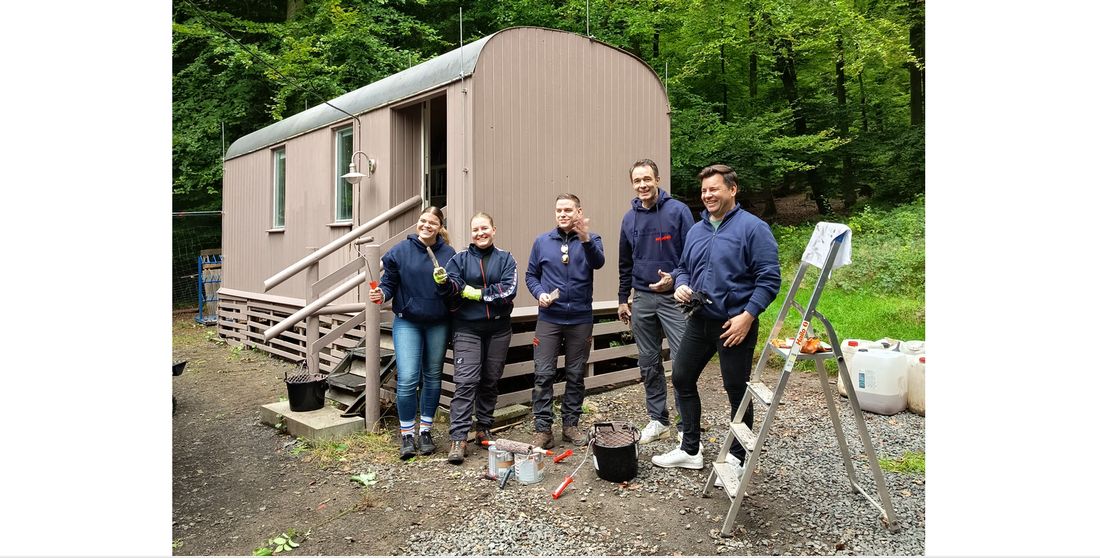 Frischer Anstrich für den Bauwagen im Waldkindergarten