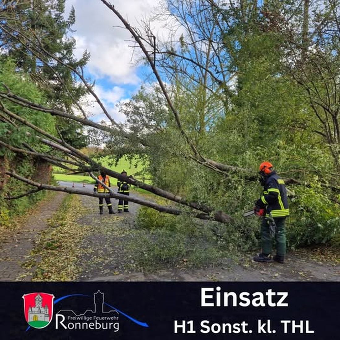 Der Sturm am Donnerstag hat zu zwei Einsätzen der Freiwilligen Feuerwehr Ronneburg geführt. Um 16:03 Uhr wurde die Feuerwehr zu einer kleinen technischen Hilfeleistung auf die Zufahrtsstraße zum Jugendzentrum Ronneburg alarmiert. Dort versperrte ein umgeknickter Baum die Straße. Der Baum wurde mit der Motorkettensäge zersägt und die Äste beiseite gelegt.