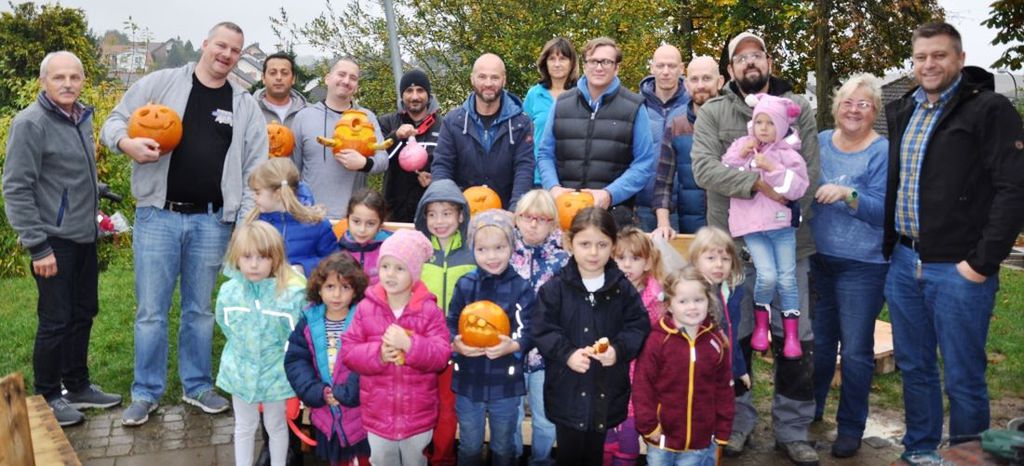Ein besonderes Lob geht an Björn Lautenschlager, Vater einer Tochter aus der Blumengruppe, der zur Verschönerung der Außenanlage beigetragen hat. Durch den Bau einer sehr schönen Matschküche, in der die Kinder auch noch künftig sehr viel Spaß haben werden, trug er zu einem abwechslungsreichen und tollen Vormittag bei. Es war ein sehr kreativer, erlebnisreicher Väter-Aktionstag und jedes Kind hat voller Stolz einen schönen Halloween Kürbis mit nach Hause gebracht.