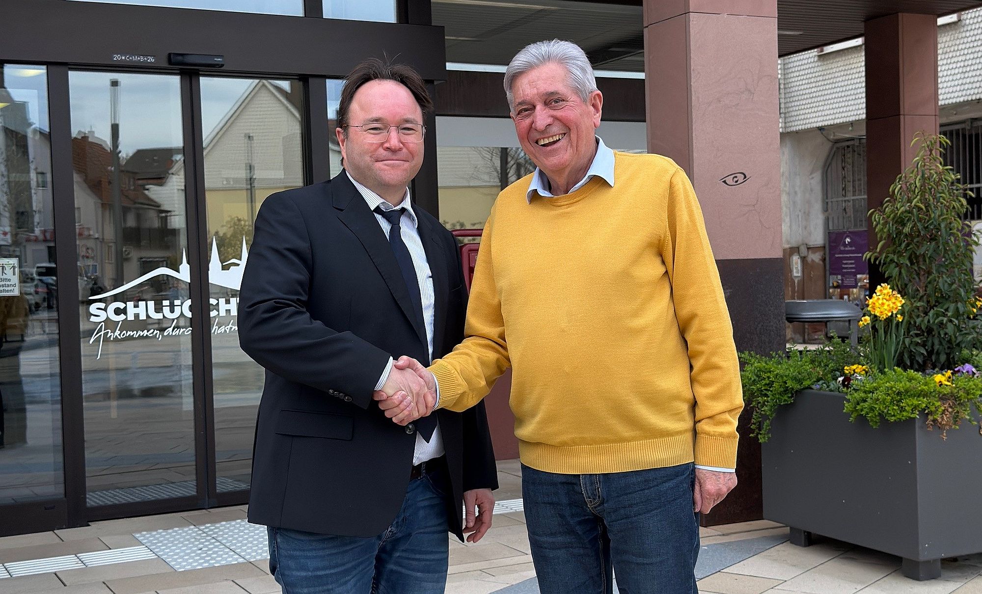 Beim Bürgertalk am Helle Markt mit Rathauschef Matthias Möller wird Klaus Diegelmann von der Werner-Gruppe (rechts) wieder dabei sein. Foto: Stadt Schlüchtern