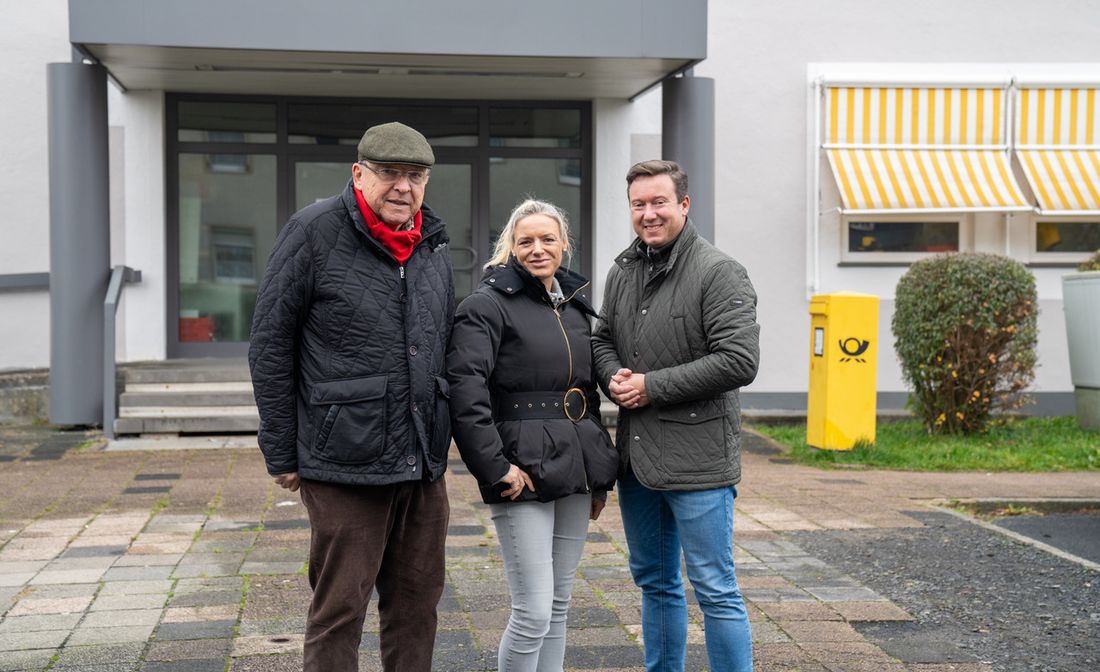 Carsten Kulbe (links) und Katharina Jürgensen vom buero kulbe wollen das Areal auf dem Postgelände in Schlüchtern entwickeln. Bürgermeister Matthias Möller unterstützt das Vorhaben. Foto: Bensing & Reith