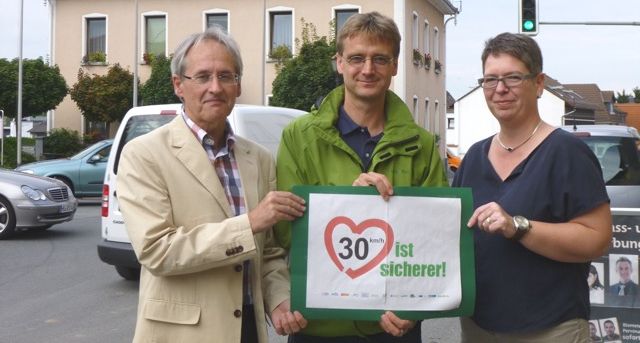 Foto: 2013: Ortsvorsteher Gerald Diehl, Wolfgang Seifried und Ortsbeirätin Petra Krebs fordern Tempo 30.