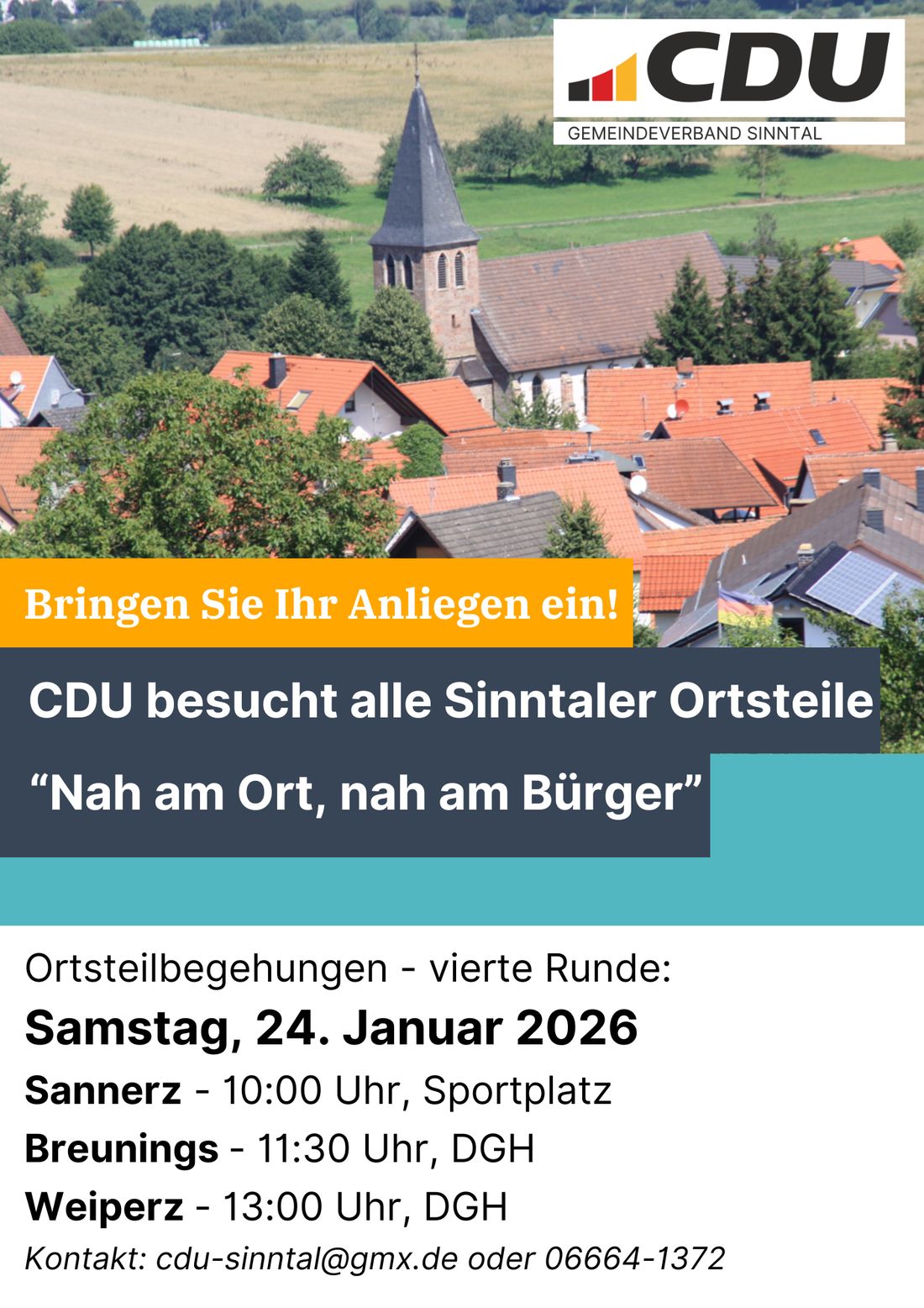 Unter dem Motto „Nah am Ort, nah am Bürger“ ist die CDU wieder in Sinntals Ortsteilen unterwegs.