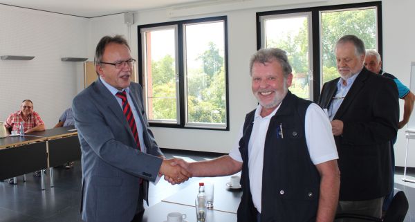 Foto: Ortsverbandsvorsitzender Julius Bergmann (rechts im Bild) bedankte sich im Namen der Gruppe bei Landrat Erich Pipa für die Informationen und Erläuterungen.