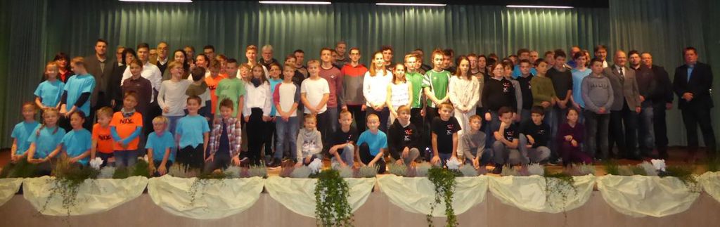 161 Sportlerinnen und Sportler waren aus ihren Vereinen im Vorfeld der Stadtverwaltung gemeldet worden. Diese wurden allesamt im Laufe des Abends auf die Bühne gebeten. Ihre sportlichen Erfolge wurden benannt und in Anerkennung ihrer erbrachten Leistungen erhielten sie die Urkunde der Stadt sowie ein kleines Erinnerungsgeschenk. In diesem Jahr verschenkte die Stadt Wächtersbach einen Sportbeutel mit dem Schriftzug „Wächtersbach (ächt) sportlich“ - praktisch z.B. für den sicheren Transport von Utensilien bei den zukünftigen sportlichen Betätigungen.