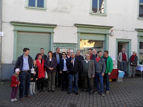 Foto: Unser Bild zeigt die Mitglieder des Verkehrs- und Gewerbevereins Ingo Lieder, Michelle Lohrey, Heike Horn, den Geschäftsführer Wilfried Wilhelm, Wächtersbacher Messe GmbH ( als gemeinsame Veranstalter des Herbstmarktes) mit Marktmeister Hans-Jürgen Braunsdorff, Bürgermeister Rainer Krätschmer, den stellv. Stadtverordnetenvorsteher Heinz Kehm sowie Magistrats- und Parlamentsmitglieder an der Markteröffnung vor dem Keramikmuseum in der Wächtersbacher Altstadt.