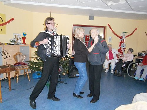 Im Marie-Juchacz-Haus stellten die Osteuropäer Volkstänze, Schlager und religiöse Lieder vor. Dass die Senioren des AWO-Seniorenheims viel Spaß an der polnisch, ukrainisch und russisch geprägten Musik, der Tradition und den farbenfrohen Kostümen der Künstler und ihren einzigartigen Instrumenten haben, war deutlich spürbar. Auch ein Tänzchen wurde aufs nicht vorhandene Parkett gelegt. „Da macht unser Auftritt richtig Spaß", sagte Vasil Irmiychuk, Leiter des Ensembles. Wie er weiter mitteilte, ist ein Teil aller Konzerteinnahmen für kranke und behinderte Menschen in der Ukraine bestimmt. AWO-Mitarbeiterin Ingeborg Zapp-Mack dankte im Namen des Publikums herzlich für die gelungene Mischung aus tiefgründigen und humorvollen Stücken.