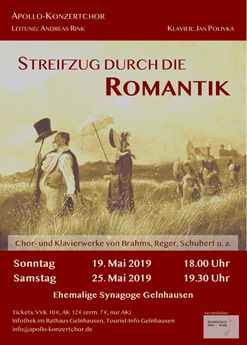 Die 23 Sängerinnen und Sänger unter der Leitung von Andreas Rink widmen sich diesmal einem Programm mit Werken der deutschen Romantik, sowohl a cappella als auch mit Klavierbegleitung. Auf dem Programm stehen Werke von Franz Schubert, Johannes Brahms, Josef Rheinberger, Max Reger und bisher selten gehörte Kompositionen von Robert Fuchs, einem Schüler von Brahms.