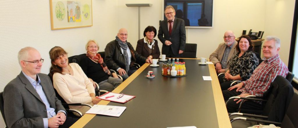 Foto: Landrat Erich Pipa (hinten, stehend) überreicht Zuschüsse in der Denkmalarbeit.