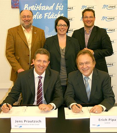 Heute unterzeichneten Landrat Erich Pipa, die Geschäftsführerin der Breitband Main-Kinzig GmbH, Susanne Simmler und Jens Prautzsch, Sprecher der M-net Geschäftsführung, die Kooperationsverträge für den glasfaserbasierten Breitbandausbau von 29 Städten und Gemeinden mit mehr als 150 Ortsteilen im einwohnerstärksten Landkreis Hessens. Die Haushalte werden dadurch künftig einen Zugang zu einem schnellen Internetanschluss mit Bandbreiten von bis zu 50 Mbit/s erhalten; bisher können die Bürgerinnen und Bürger nur auf einen Bruchteil der Verbindungsleistung zugreifen. Das Breitbandprojekt im Main-Kinzig-Kreis gilt als eines der größten seiner Art bundesweit.