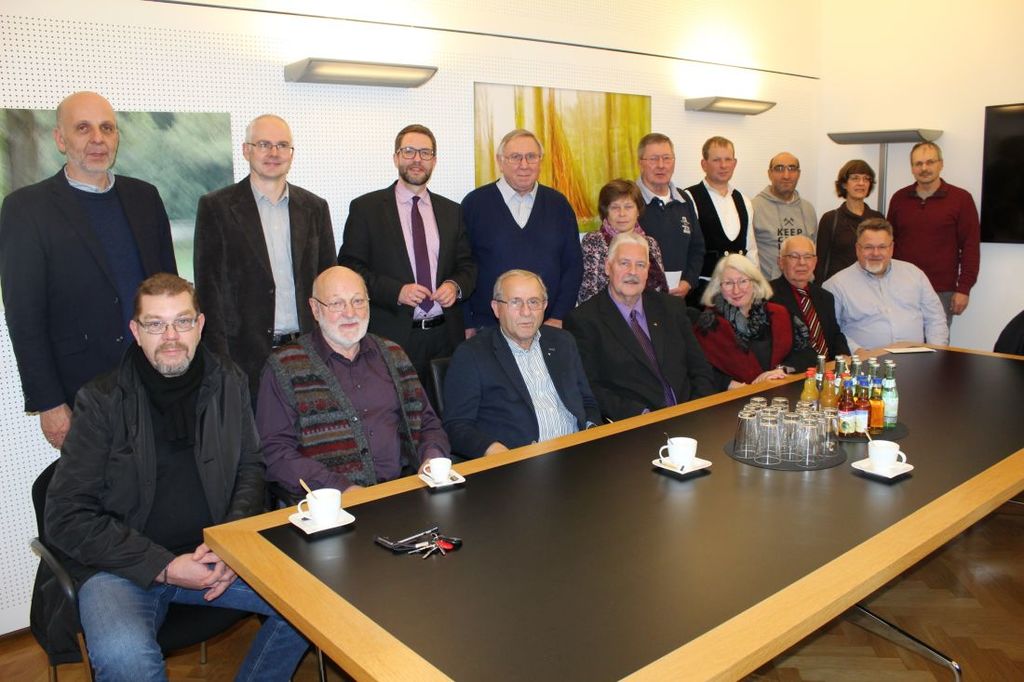 Foto: „Denkmalschutz ist ein Teil der Heimatpflege“: Der Main-Kinzig-Kreis bezuschusst mehrere Projekte im Kreisgebiet, hinten von links: Kreisarchäologe Claus Bergmann, Roland Buchhold (Bereich Denkmalschutz) und Landrat Thorsten Stolz.