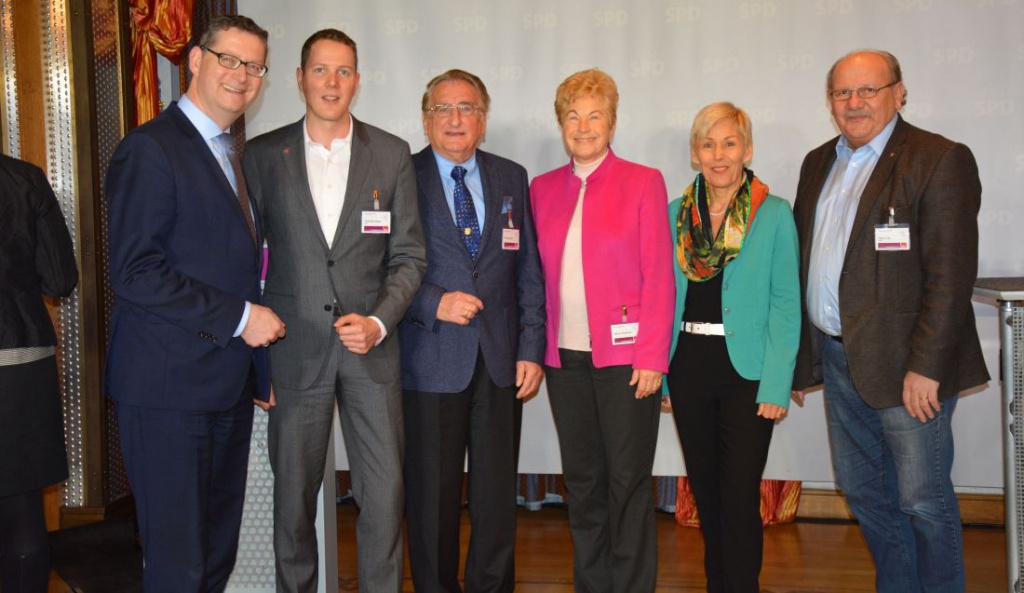 Foto (von links): Thorsten Schäfer-Gümbel, Christoph Degen, Karl Eyerkaufer, Marion Eyerkaufer, Bettina Müller, Heinz Lotz.