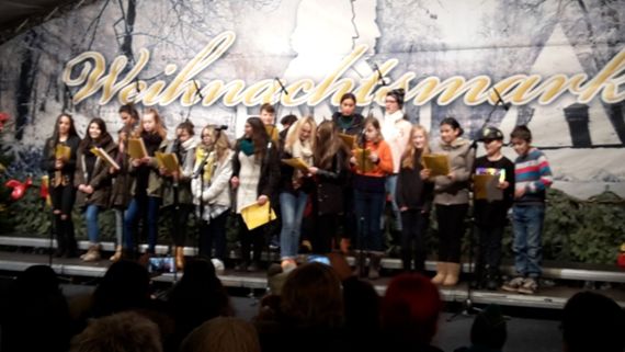 Die etwa 40 Schülerinnen und Schüler der beiden Chöre hatten sichtlich Spaß bei ihren Vorträgen. Sie begeisterten rund 45 Minuten lang die Besucher des Weihnachtsmarktes, darunter zahlreiche Lehrkräfte der Sekundarstufe, der Grundschule, Eltern und auch die Schulleitung.
