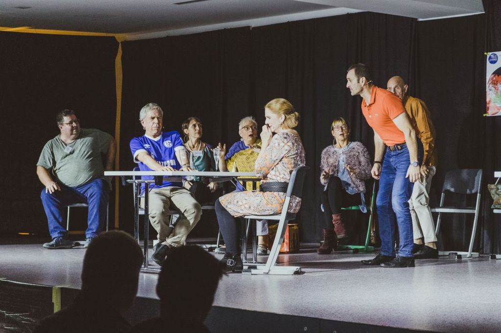 Die acht Mimen, alles Laiendarsteller des vor zwei Jahren gegründeten Ensembles „Eltern-Lehrer-Theatergruppe der Otto-Hahn-Schule“, vermittelten mit gutem Einfühlungsvermögen die Charakterzüge der einzelnen Personen. Um dem Alleinsein zu entkommen, belegen sie alle einen Volkshochschulkurs, in dem sie das Flirten neu erlernen wollen, um jemanden neuen kennenzulernen.