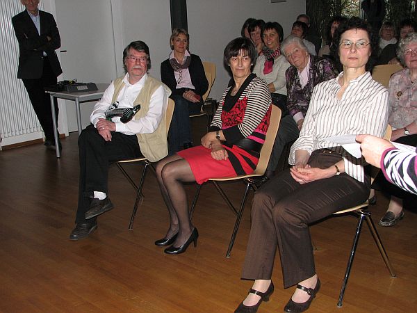 Martin Dickmann und Alfred Kästle „knüpften“ sich Kajo Leipold vor. Sie hatten eine Powerpointpräsentation vorbereitet, in der sie das Leben ihres Kollegen karikierten. Dabei hatten sie in das ausgewählte Bildmaterial immer wieder das Gesicht des Kollegen Leipold montiert. Ob er dabei sich als Rainer Langhans neben Uschi Obermeier im Bett liegend einen Joint gönnte, mit Herrn Staatsratsvorsitzendem Honecker den Bruderkuss austauschte oder wie Albert Einstein dem Publikum die Zunge entgegenstreckte, die launigen Kommentare der Bilder von Herrn Dickmann brachte das Publikum so richtig in Schwung. Schlussakkord der Präsentation war das Bild einer Tanzgruppe mit dem koreanischen Rapper Psy und seinem „Gangnam Style“. Hier fanden sich die Konterfeis der drei verabschiedeten Lehrer ebenso wie die beiden Urheber der Präsentation, ganz im Stile der alten italienischen Meister. An der Verabschiedungsfeier nahmen auch die neuen Lehrer teil, die nun ihren Dienst an der St. Josef-Schule tun.