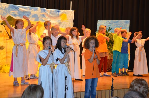 Foto: Gesang, Tanz und Spiel zu Ehren Gottes: Die Grundschüler der Paul-Gerhardt-Schule begeisterten mit dem Musical „Das lebendige Buch“ zweimal das Publikum.