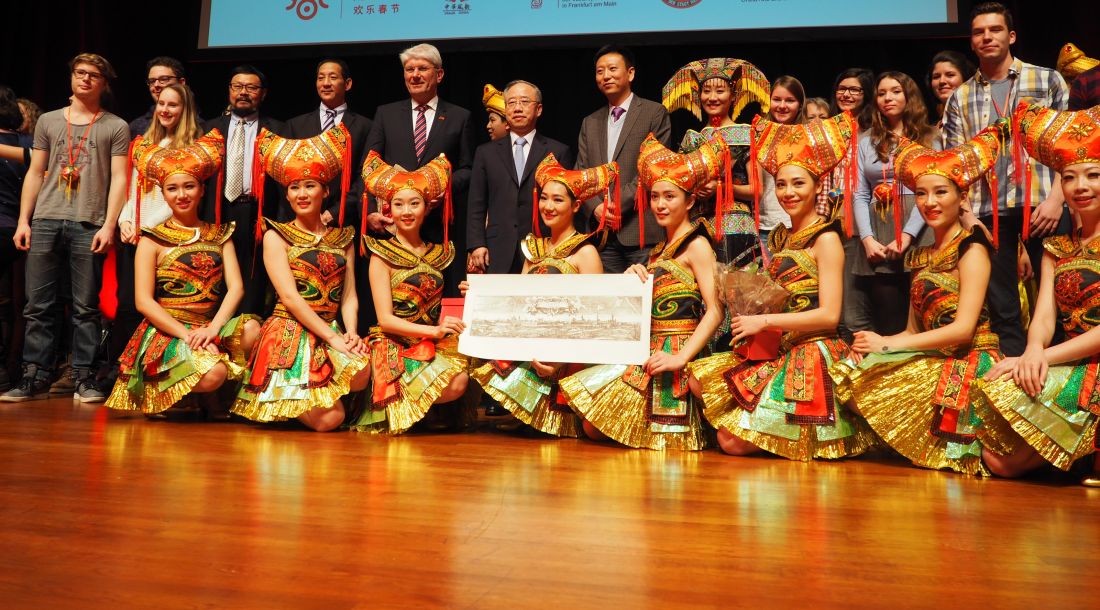 Foto: Großer Schlussapplaus für die jungen Künstler aus Südchina, die den KRS-Schülern auf tänzerische und stimmliche Art und Weise ein Stück ihrer Heimat auf die Bühne des CPH brachten. KRS-Direktor Jürgen Scheuerman und der chinesische Generalkonsul Liang Jianquan jedenfalls zeigten sich von der Aufführung begeistert.
