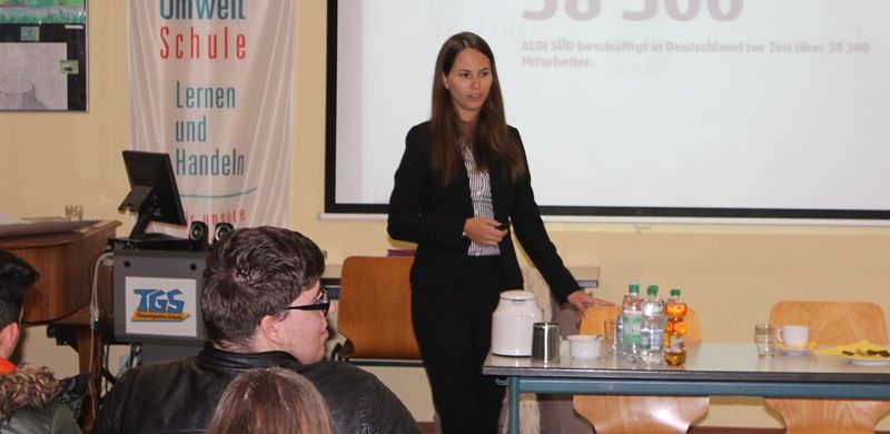 Foto: Frau Stork von Aldi Süd GmbH & Co. KG stellt ihr Unternehmen vor.