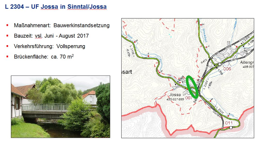 Erleichterung wird ab Mai in Langenselbold herrschen, dann soll die im Sommer des vergangenen Jahres begonnene Sanierung des Kreuzungsbereichs Hinserdorfer Straße und Hüttengesäßer Straße, die zu erheblichen Einschränkung beim Verkehr in Richtung Ronneburg und Gründau gesorgt hat, beendet sein. Allerdings werden die Baumaschinen nur einige Kilometer bereits wieder eingesetzt: Wie bereits angekündigt, wird die L 3009 zwischen Hammersbach-Marköbel und Ronneburg-Hüttengesäß ausgebaut, von Juni bis Oktober muss diese Verbindung dafür komplett gesperrt werden. Im östlichen Main-Kinzig-Kreis investiert das Land zudem in zwei Brückensanierungen in den Sinntaler Ortsteilen Jossa und Mottgers und in die Sanierung der Durchfahrt von Schlüchtern-Gundhelm.