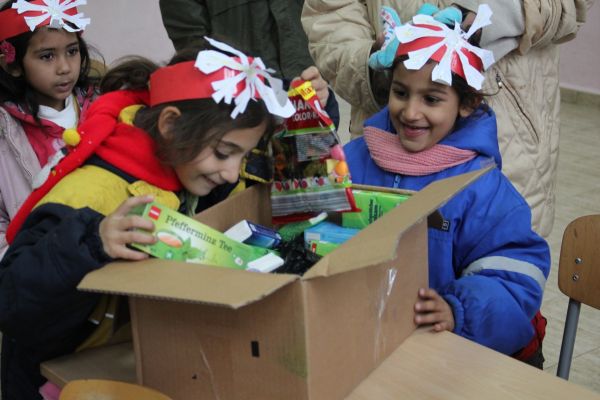 Fotos: Kinder in Vidrare öffnen ihre Weihnachtspäckchen. © D. Gschwandtner