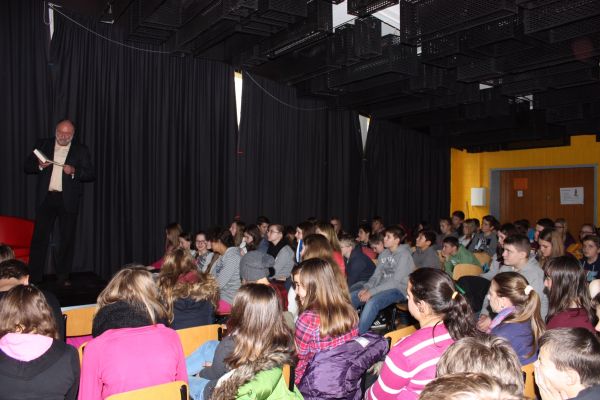 Foto: Der Kreisbeigeordnete Matthias Zach unterstützt das Vorlesen – auch als Vorleser vor großem Publikum, wie vor wenigen Tagen in Birstein.