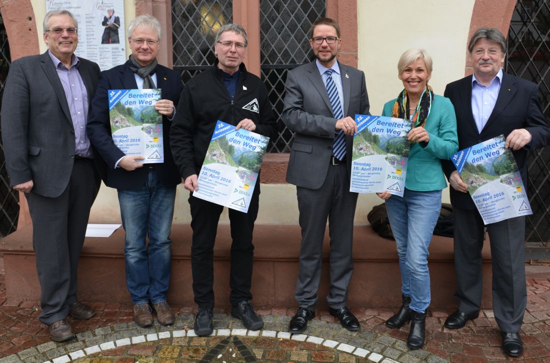 Foto: Freuen sich auf das 35. Anlassen am 10. April (von links): Stadtrat Dieter Ullrich, Cornelius Blanke (ADAC), Biker-Pfarrer Thorsten Heinrich, Bürgermeister Thorsten Stolz, Schirmherrin und Bundestagsabgeordnete Bettina Müller sowie Erich Spieker (ADAC).